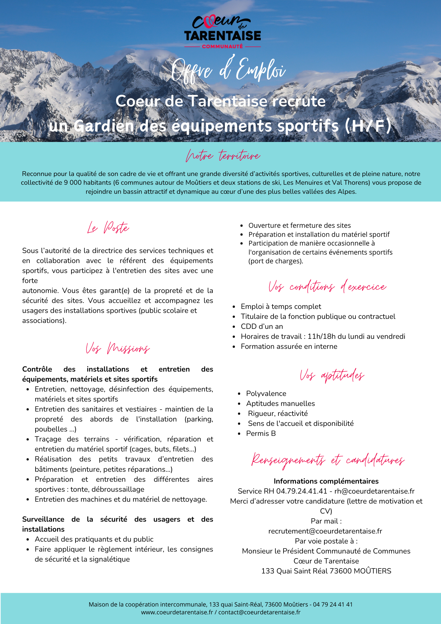 [Recrutement] Nous recherchons un gardien des équipements sportifs !